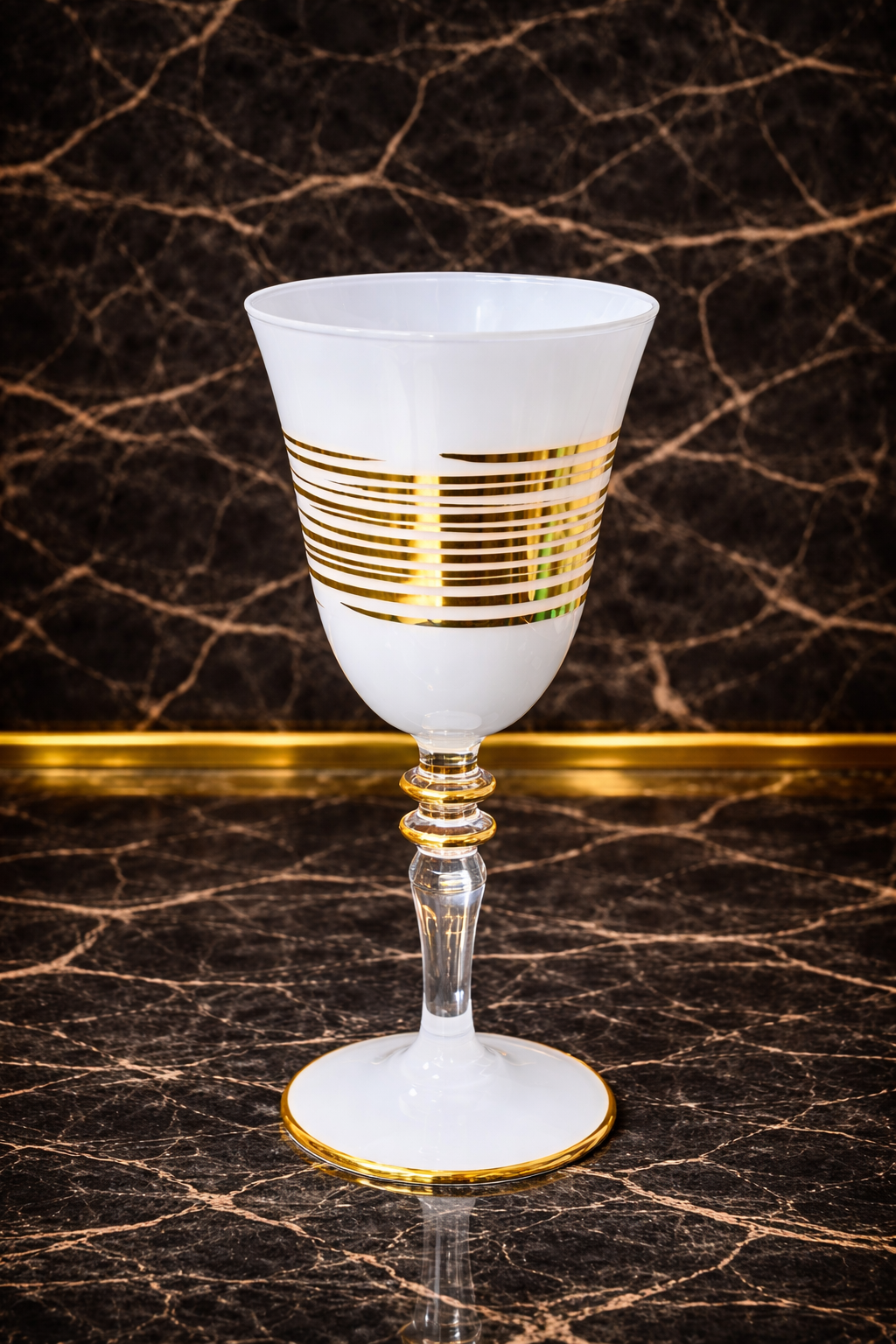 Zarif formu ve özenle işlenmiş altın detaylarıyla bu cam kadeh, sofistike sunumlar için tasarlanmıştır. Parlak cam yüzeyi ve el işçiliği desenleri, ürüne lüks ve zamansız bir karakter kazandırır. Şık sofralar, özel davetler ve seçkin sunumlar için ideal bir tercihtir.