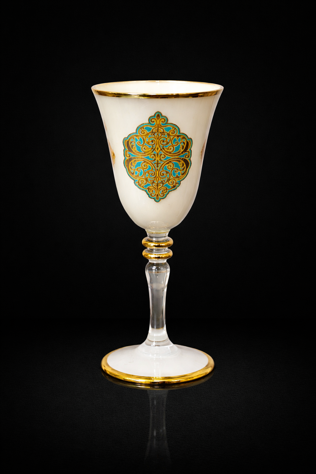 Zarif formu ve özenle işlenmiş altın detaylarıyla bu cam kadeh, sofistike sunumlar için tasarlanmıştır. Parlak cam yüzeyi ve el işçiliği desenleri, ürüne lüks ve zamansız bir karakter kazandırır. Şık sofralar, özel davetler ve seçkin sunumlar için ideal bir tercihtir.