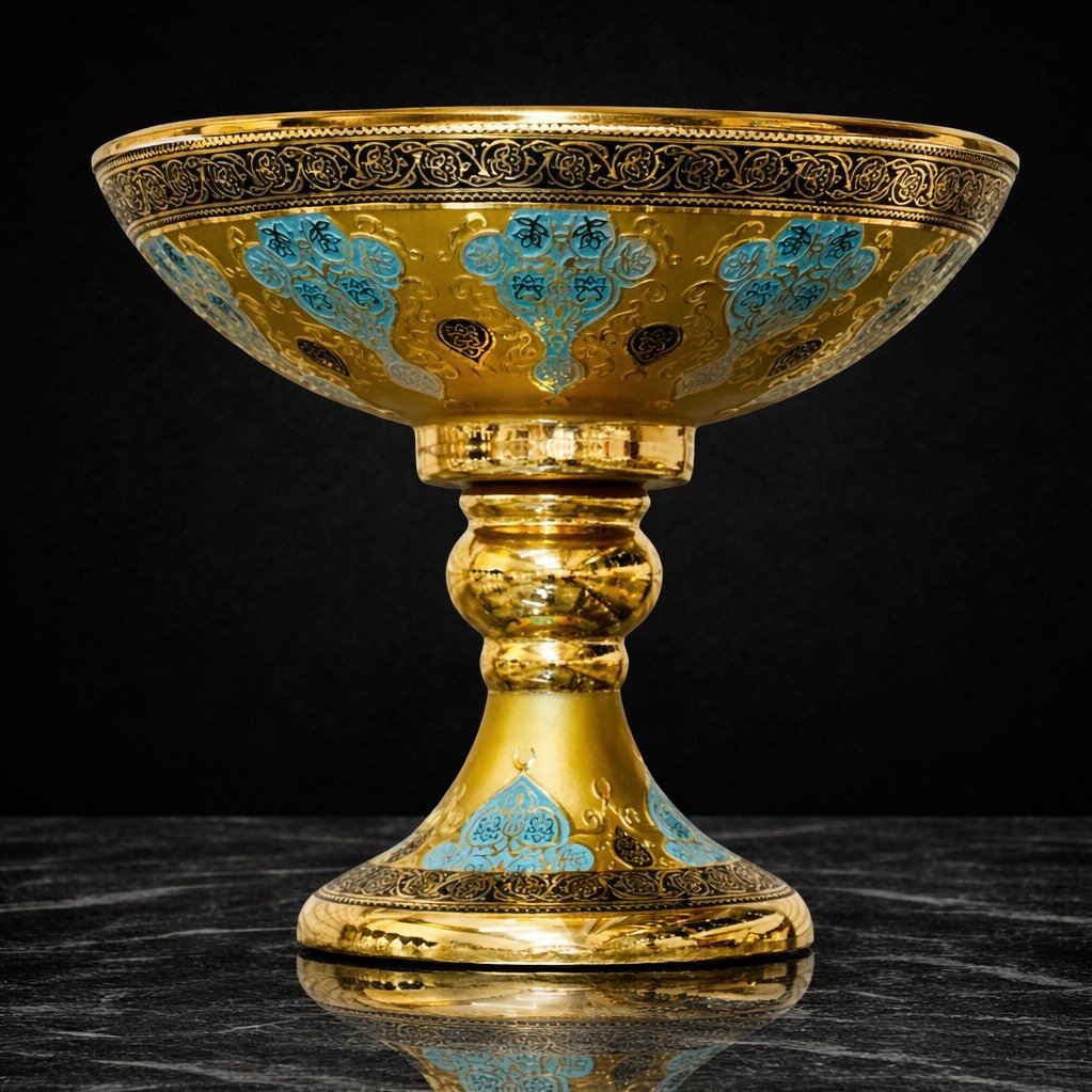 Zarif desenleri ve parlak gold detaylarıyla öne çıkan bu özel meyvelik, tamamı el işçiliği ile üretilmiştir.