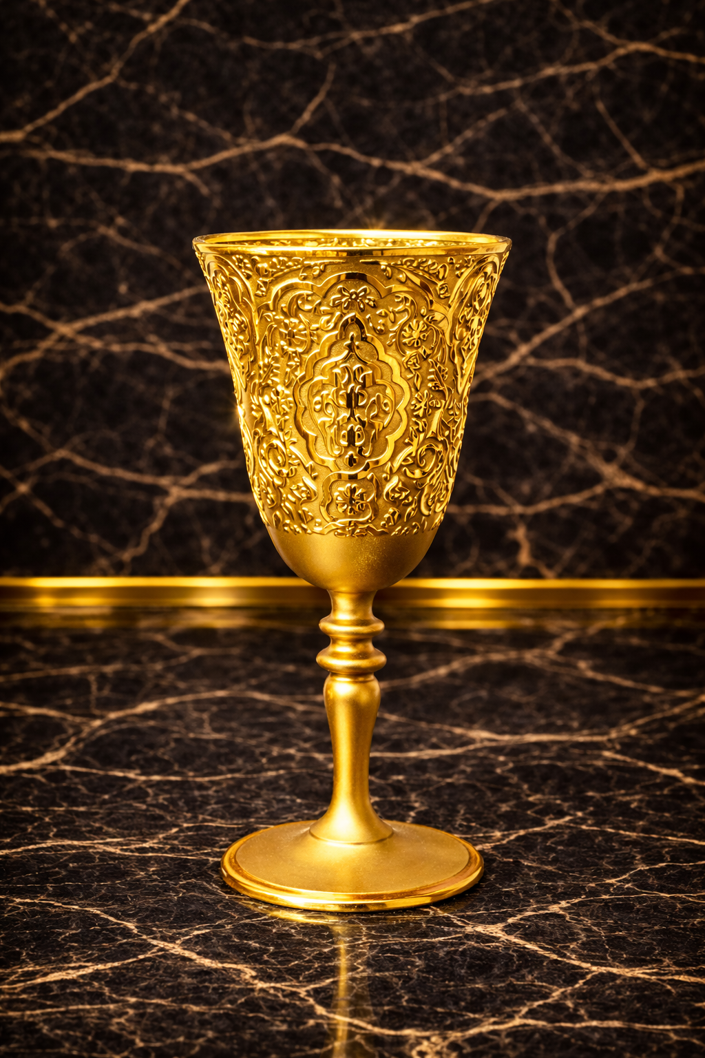 Zarif formu ve özenle işlenmiş altın detaylarıyla bu cam kadeh, sofistike sunumlar için tasarlanmıştır. Parlak cam yüzeyi ve el işçiliği desenleri, ürüne lüks ve zamansız bir karakter kazandırır. Şık sofralar, özel davetler ve seçkin sunumlar için ideal bir tercihtir.