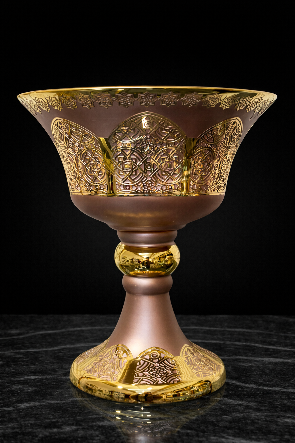 Zarif desenleri ve parlak gold detaylarıyla öne çıkan bu özel meyvelik, tamamı el işçiliği ile üretilmiştir.