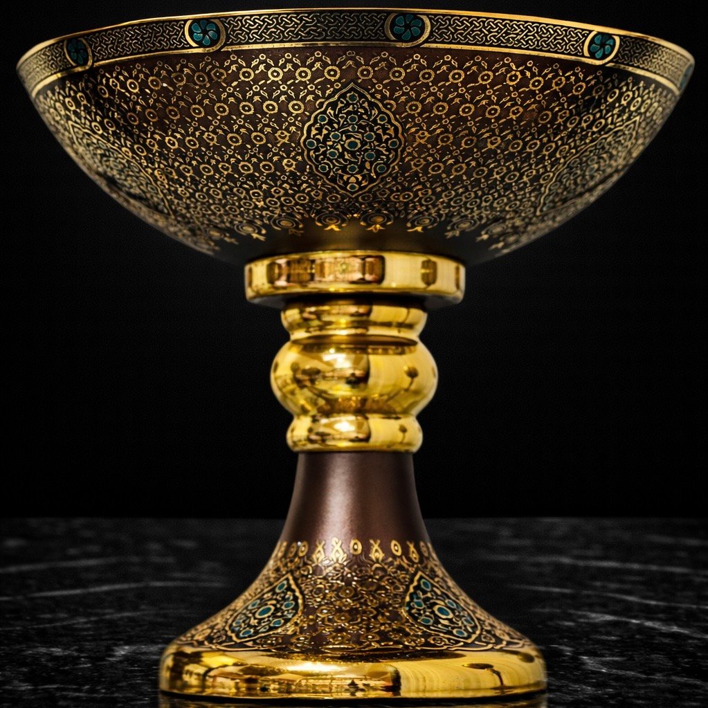Zarif desenleri ve parlak gold detaylarıyla öne çıkan bu özel meyvelik, tamamı el işçiliği ile üretilmiştir.