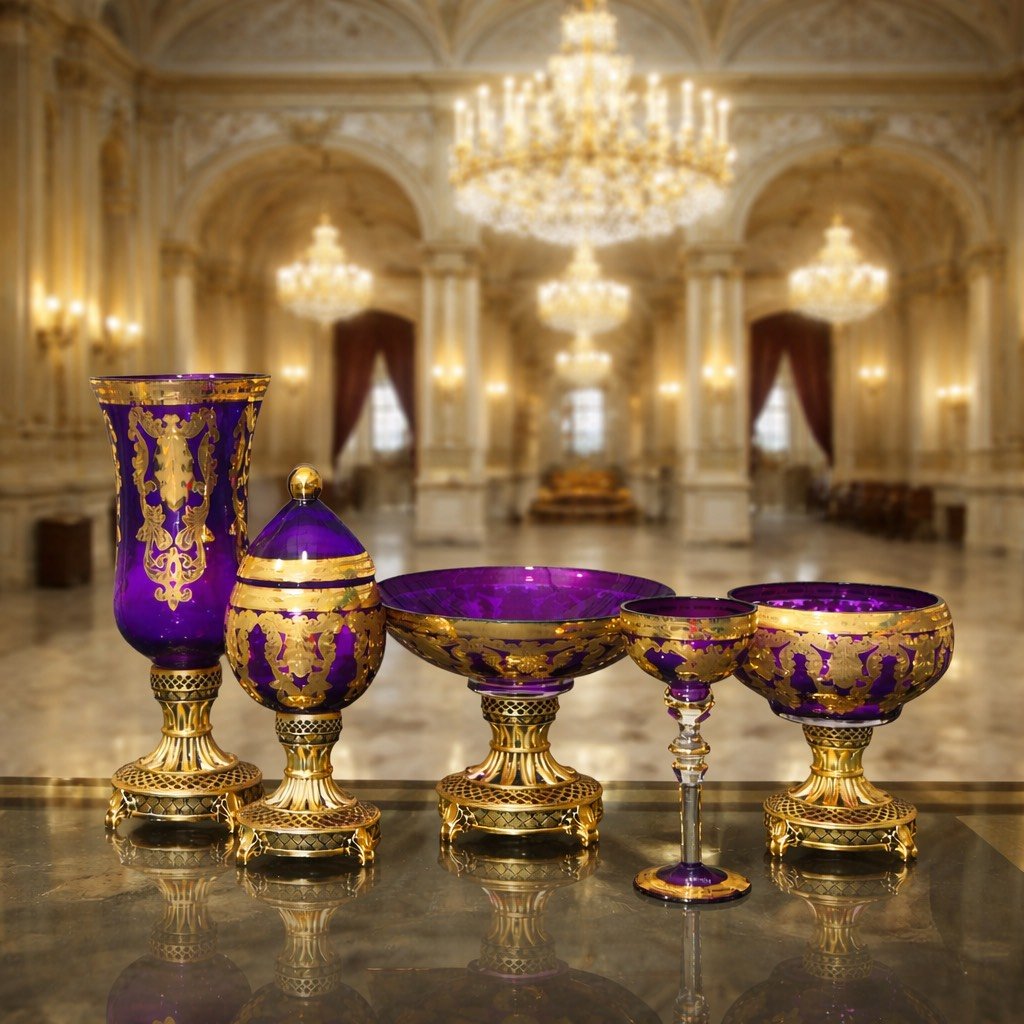 Üfleme cam tekniğiyle üretildiği için her parça kendine özgüdür ve el işçiliğinin değerini yansıtır. Konsol, vitrin ve salon dekorasyonunda şıklığı tamamlayan bu 6 parça set, klasik ve avangart dekorasyon tarzlarıyla mükemmel uyum sağlar.